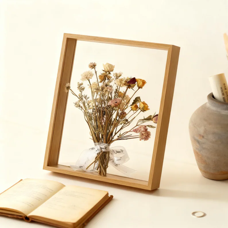 Nom du produit:Cadre photo en bois avec fleurs séchées
