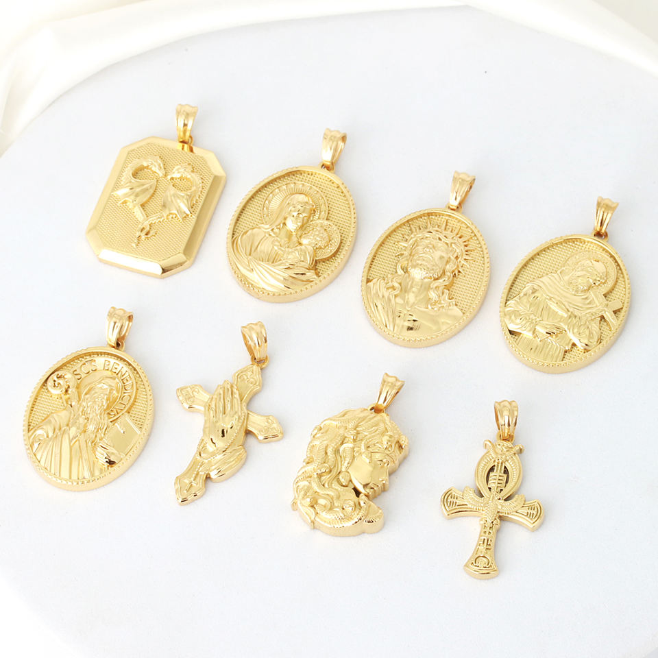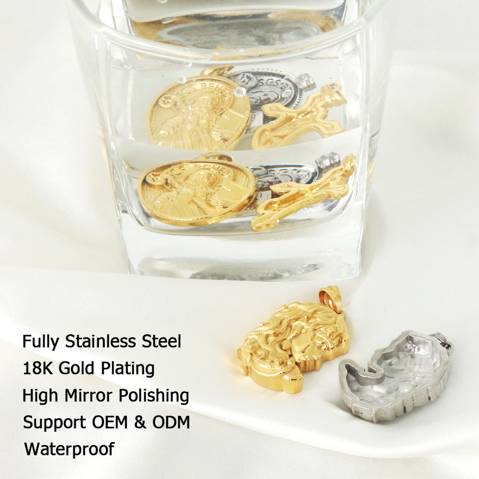 Pendentif croix religieuse jésus en plaqué or 18 carats pour hommes méduse design 3D Bijoux de mode personnalisés en acier inoxydable Pendentifs pour collier