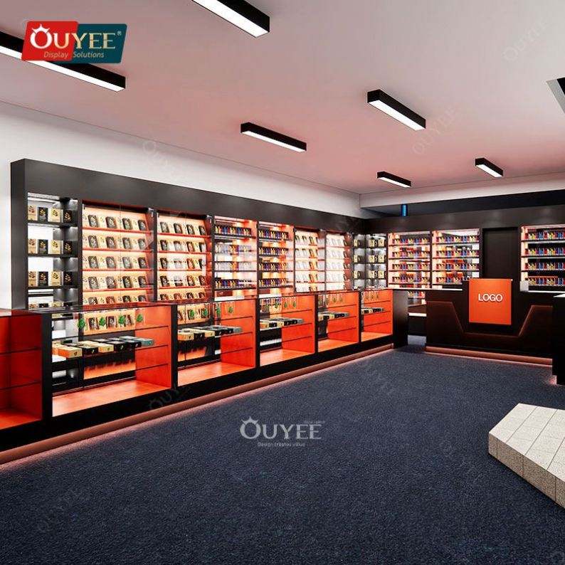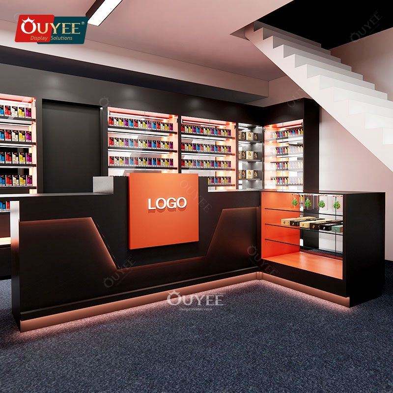 Présentoir de service de conception 3D fabricant de meubles sur mesure armoire à tabac en verre table de présentation de dispensaire pour magasin de tabac