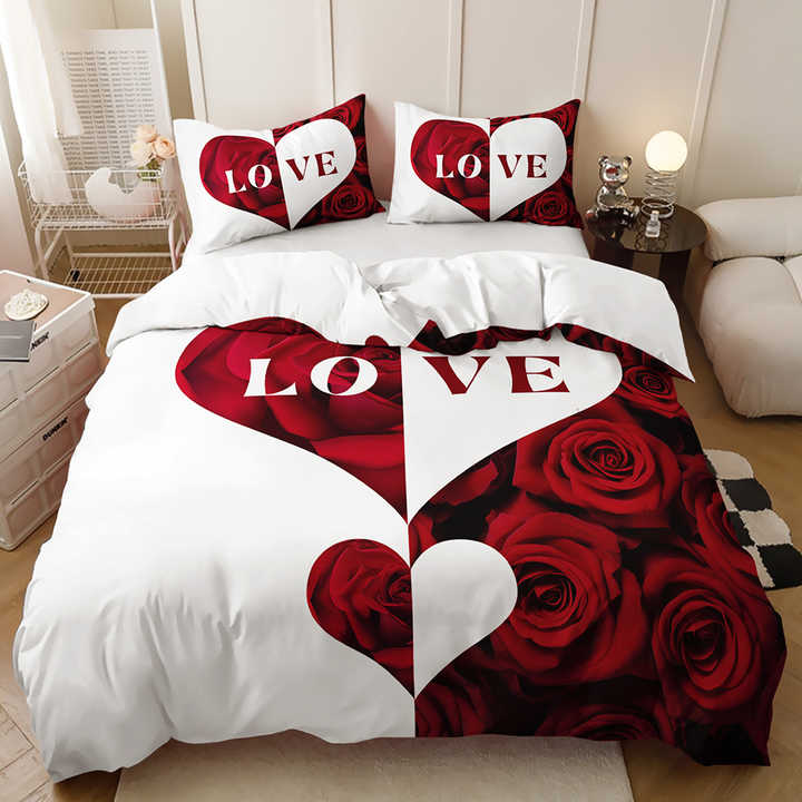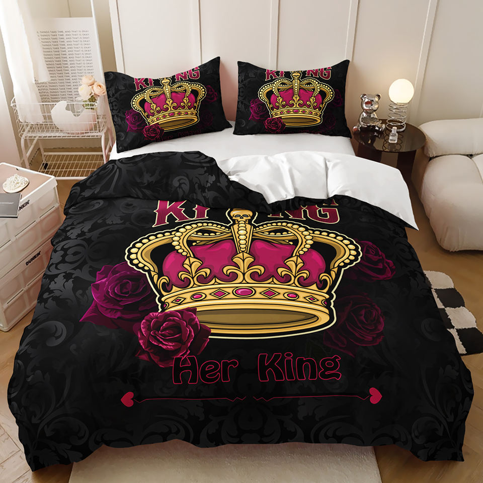 Impression numérique 3D Motif personnalisé Noir Rouge He She Queen King Couple Mariage Literie Polyester Housse de couette Ensemble