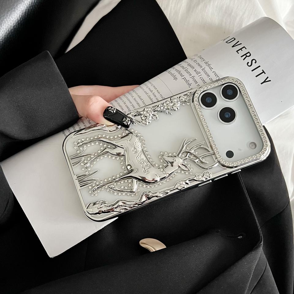 Nom du produit:Coque de protection 3D Élan Cerf Plaqué Paillettes Diamant Transparente - Thème Noël