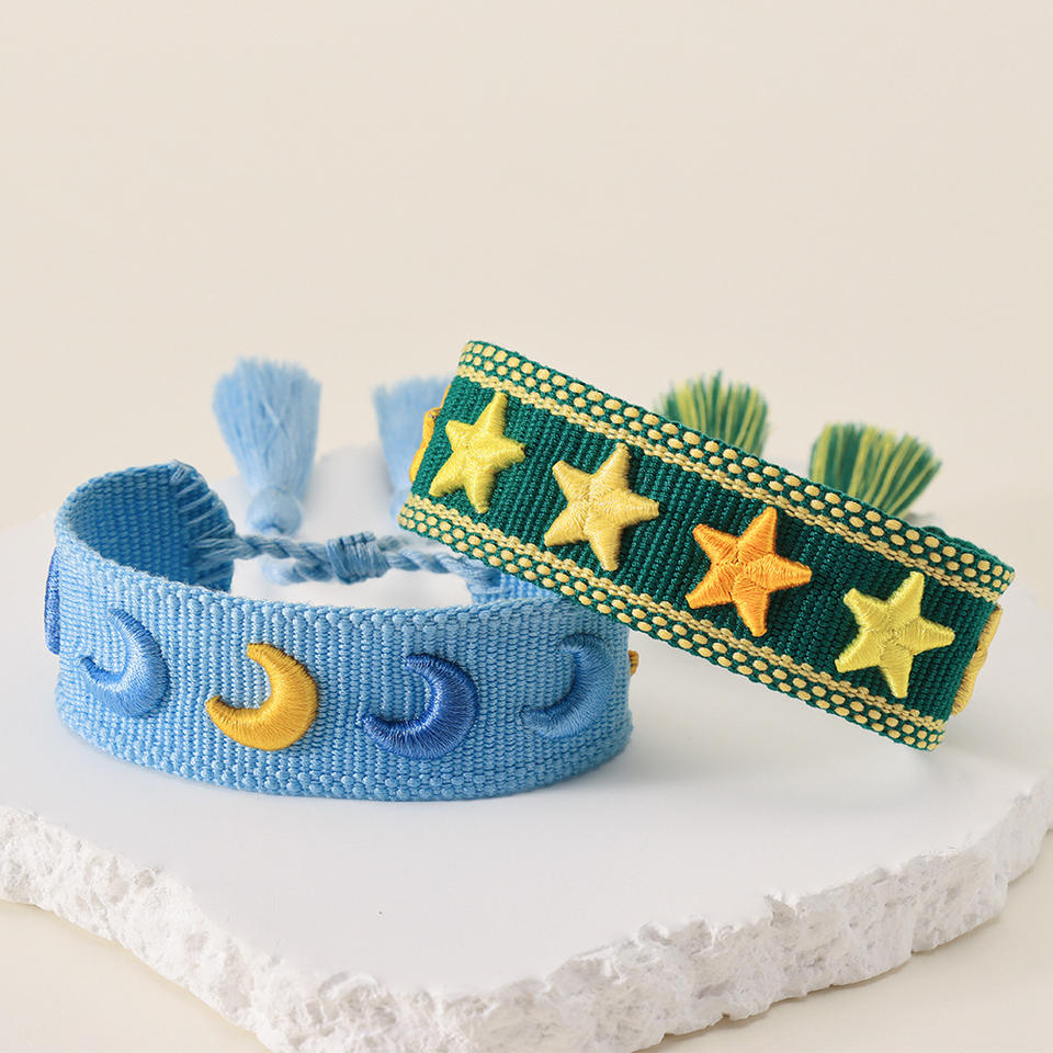 Bracelet brodé 3D avec motif d'étoile, papillon, cœur, logo personnalisé, mot et tissu avec lettres, bracelet tissé d'amitié