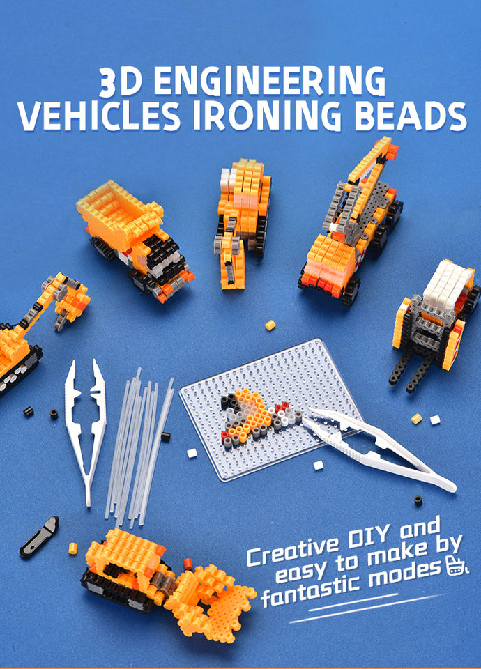 Série de kits de perles à fusionner 3D pour voitures d'ingénieurs, pour l'éducation et l'artisanat créatif DIY des enfants, développement de la motricité fine
