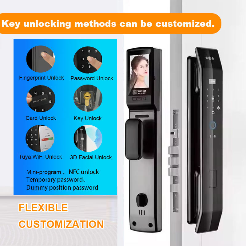Serrure de porte intelligente à reconnaissance faciale 3D, serrure intelligente vidéo avec caméra intégrée, WiFi, sonnette vidéo, contrôle par application Tuya, verrouillage automatique