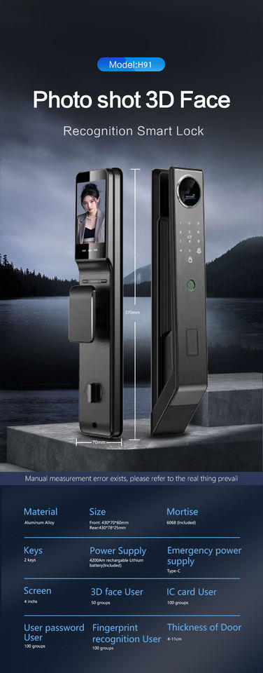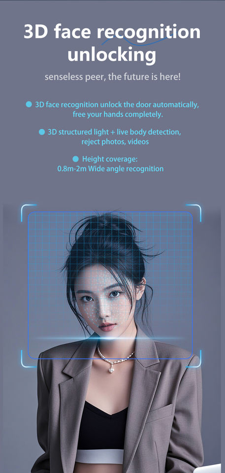 Déverrouiller façon:3D visage + empreinte digitale + mot de passe + carte + clé + APP télécommande