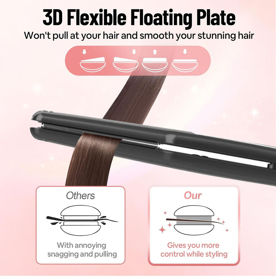 Fer à lisser numérique électrique 2 en 1 à plaque flottante 3D, fer à lisser professionnel à LED