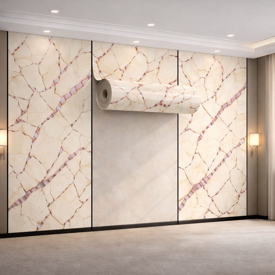 Nom du produit:Autocollant mural imitation marbre brillant IXPE 2,5 mm, pelable et repositionnable (rouleau)