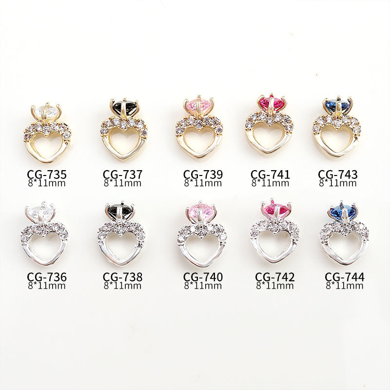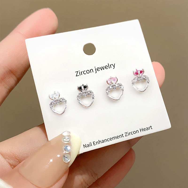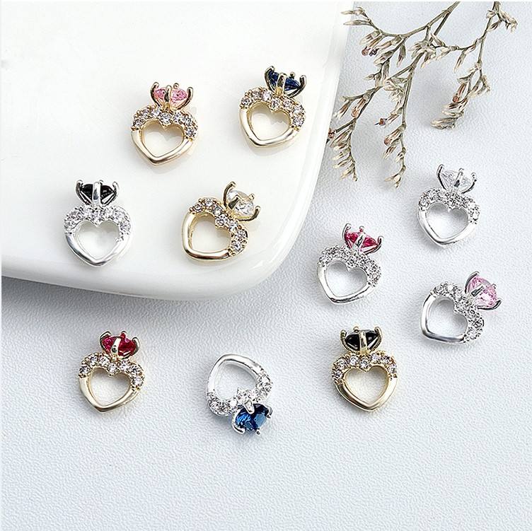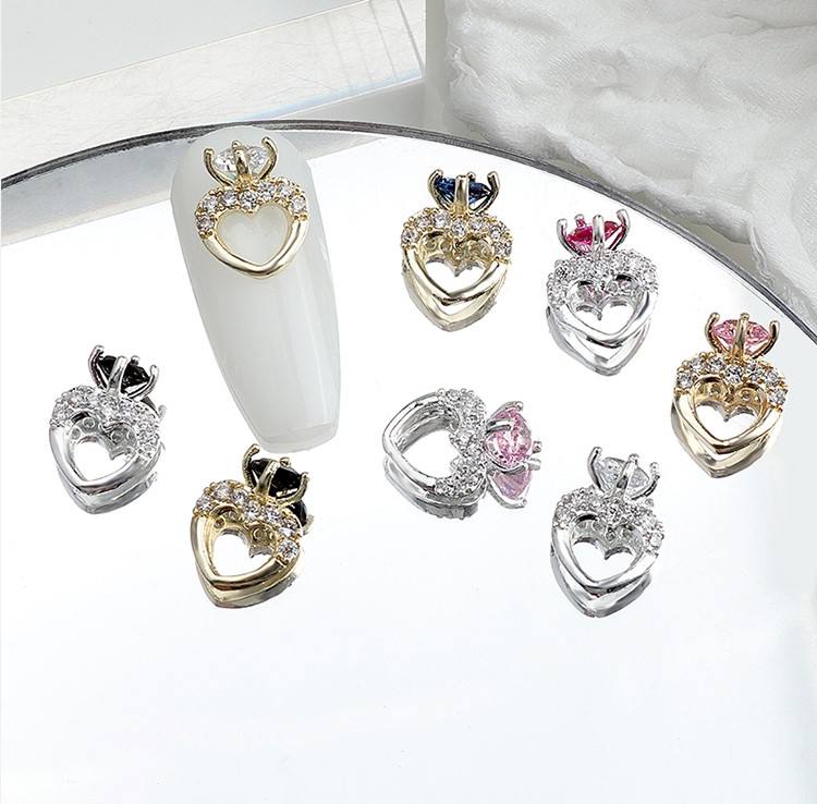 Accessoires de décoration d'ongles en forme de cœur 3D avec strass en zircon, breloques en forme de cœur en zircon pour ongles