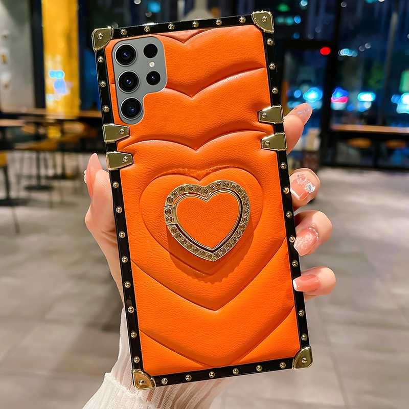 Étui pour Samsung Galaxy S20FE S21FE S21 S22 avec design en forme de cœur 3D, pour Galaxy Note 20 Ultra, étui de téléphone avec support d'anneau