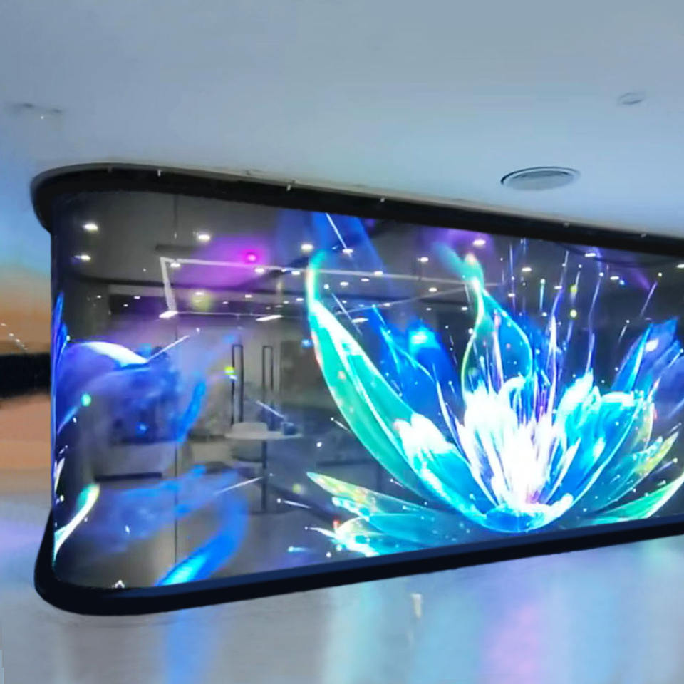 Écran d'affichage holographique LED 3D transparent, film flexible de 7,8 mm, écran mural en verre intérieur, publicité vidéo holographique pour les magasins de détail