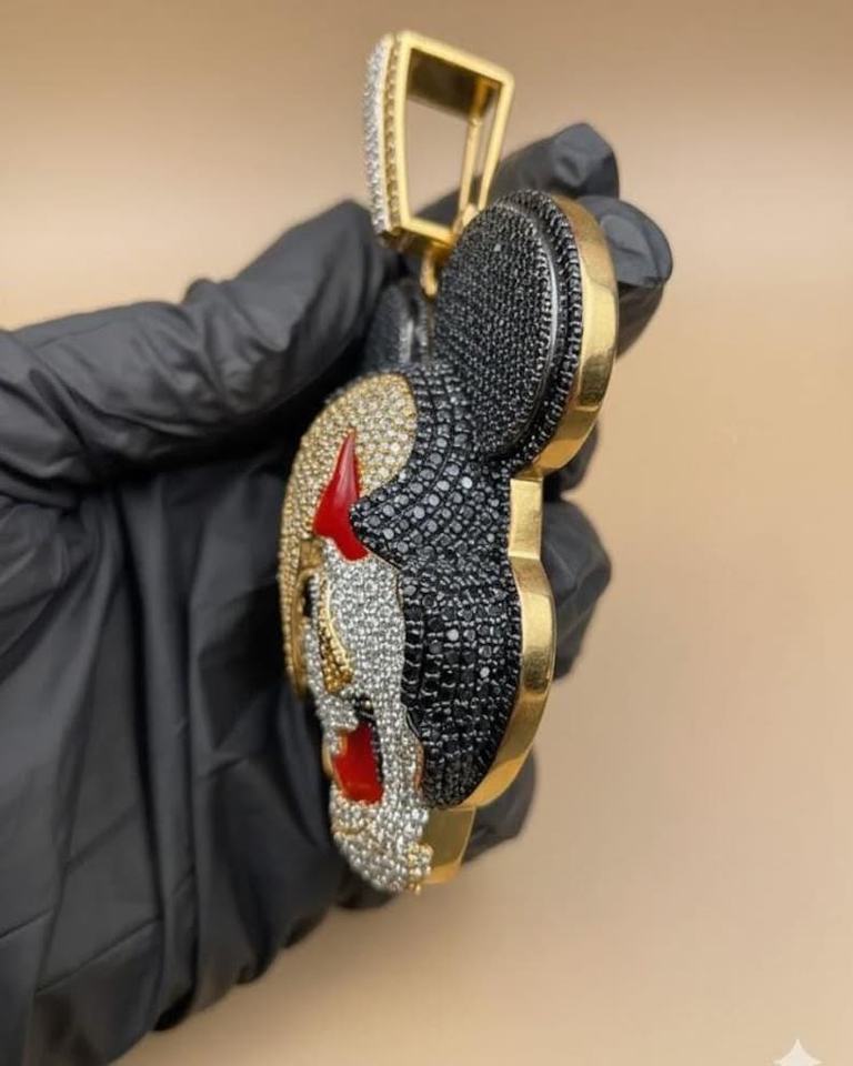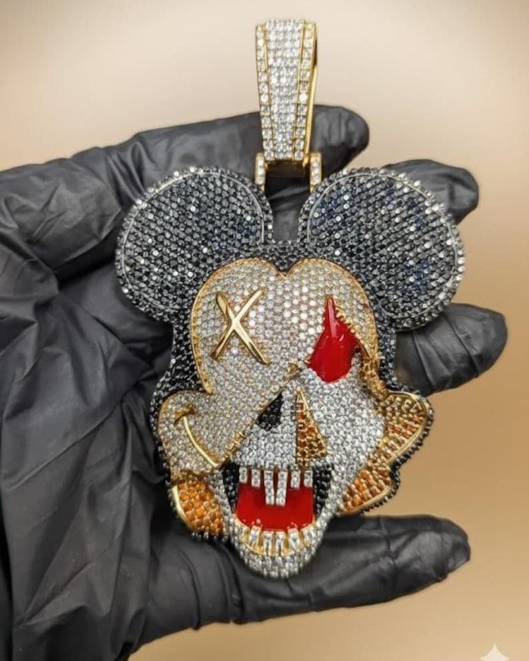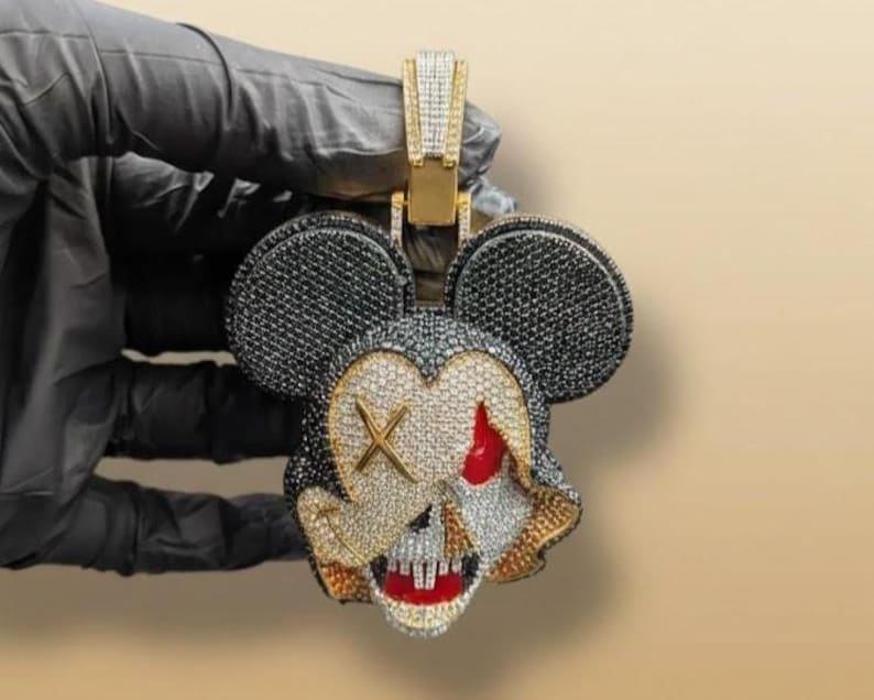 Pendentif Mickey Mouse 3D Iced-Out en Moissanite, Bijou Hip Hop Bling pour Rappeur, Personnalisé en Argent Sterling 925, Luxe Rhodié/Doré