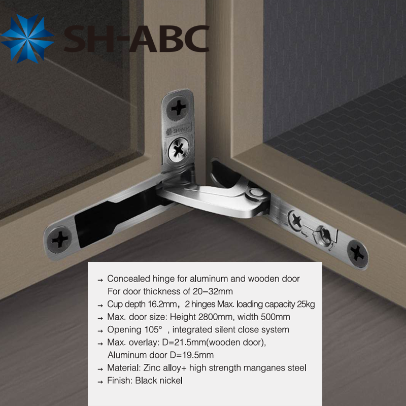 Charnière de porte invisible moderne en zinc de fabrication italienne de précision 3D, finition noire/nickel, pour chambre d'hôpital