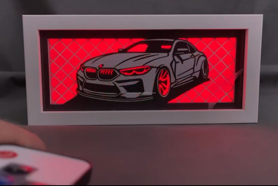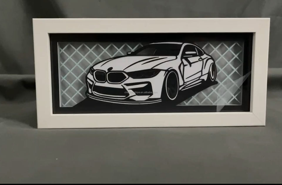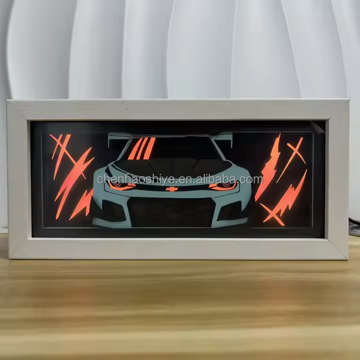 Lampe de nuit à cadre en bois imprimé laser 3D en forme de voiture Lampe de table rectangulaire pour la décoration de la maison, de la chambre à coucher et de la voiture