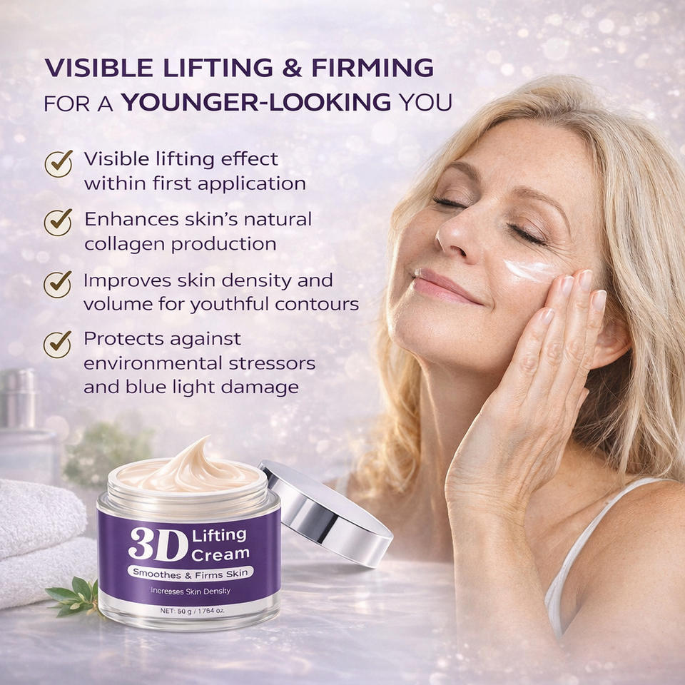 Crème liftante 3D pour le visage, raffermissante et tenseur, hydratante pour peaux relâchées, traitement de contouring avec peptides pour une ligne de mâchoire définie