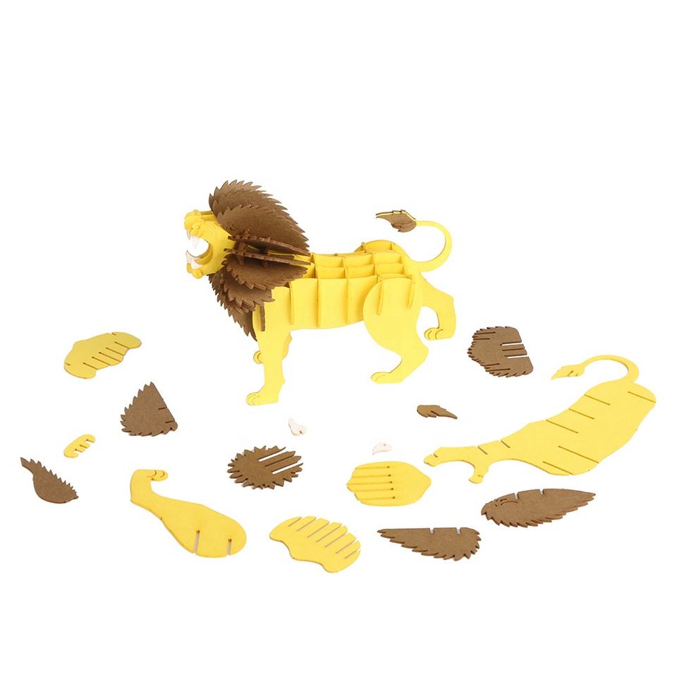 Modèle de puzzle en carton 3D Lion DIY Animaux sauvages réalistes Kit de construction artisanal pour zoo, musée, art et collection