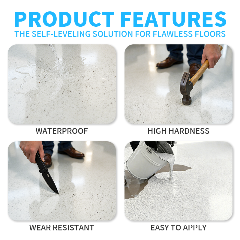 Revêtement de sol en résine liquide 3D auto-nivelante avec sable coloré : effet métallique, effet marbre et antidérapant