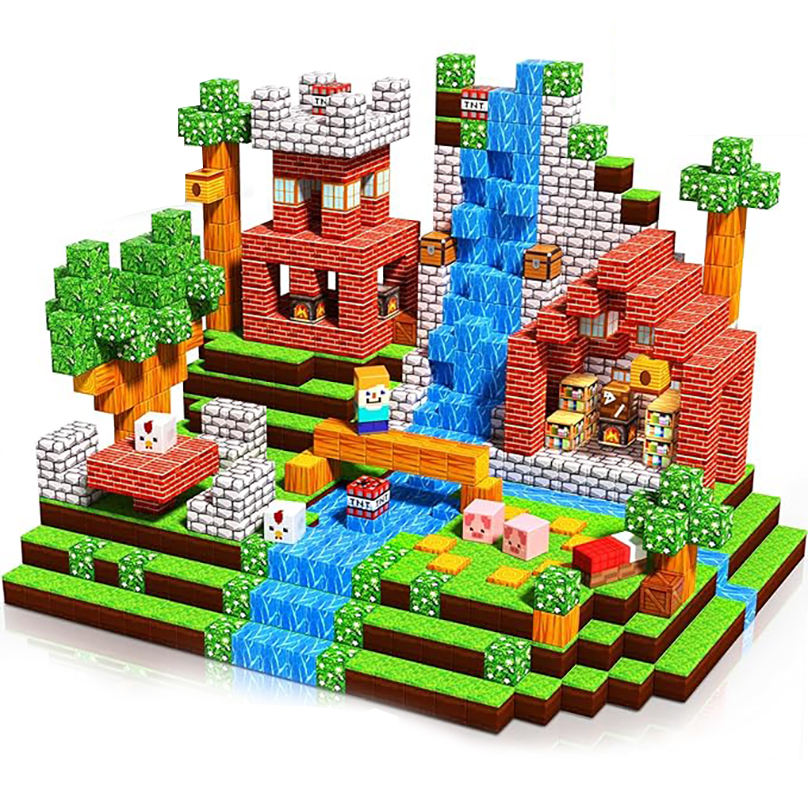 Ensemble de jouets de construction en plastique magnétique 3D Mine World Puzzle, bâtonnets et boules pour enfants, éducatif STEM, 102 pièces, certifié EN71, EHUNT