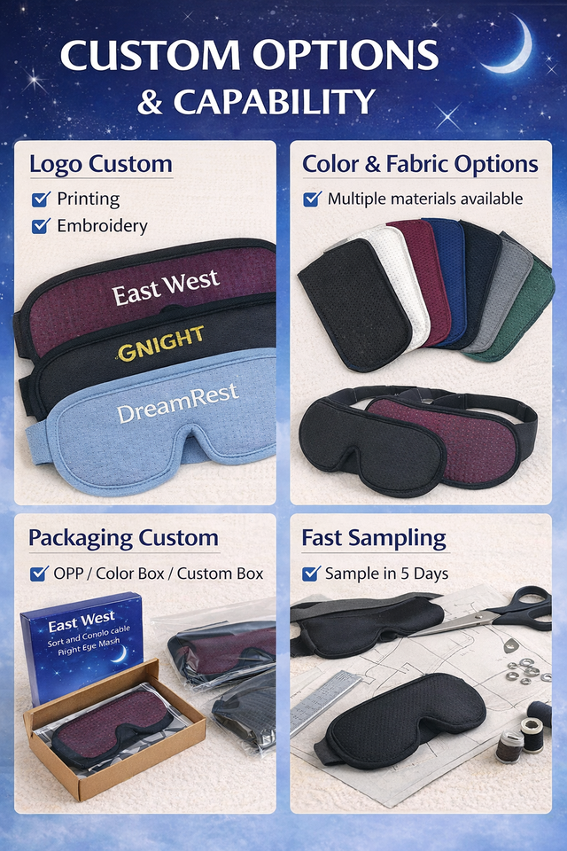 Masque de sommeil en mousse à mémoire de forme 3D, MOQ à partir de 100 pièces, échantillonnage personnalisé rapide
