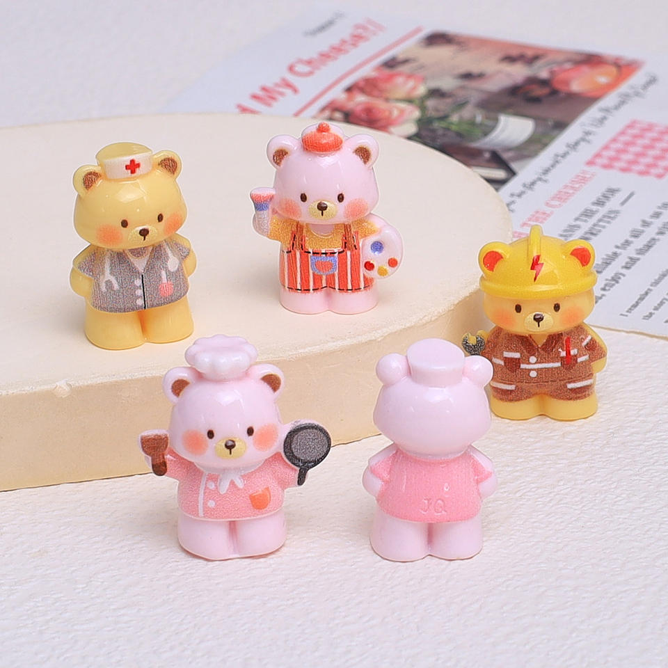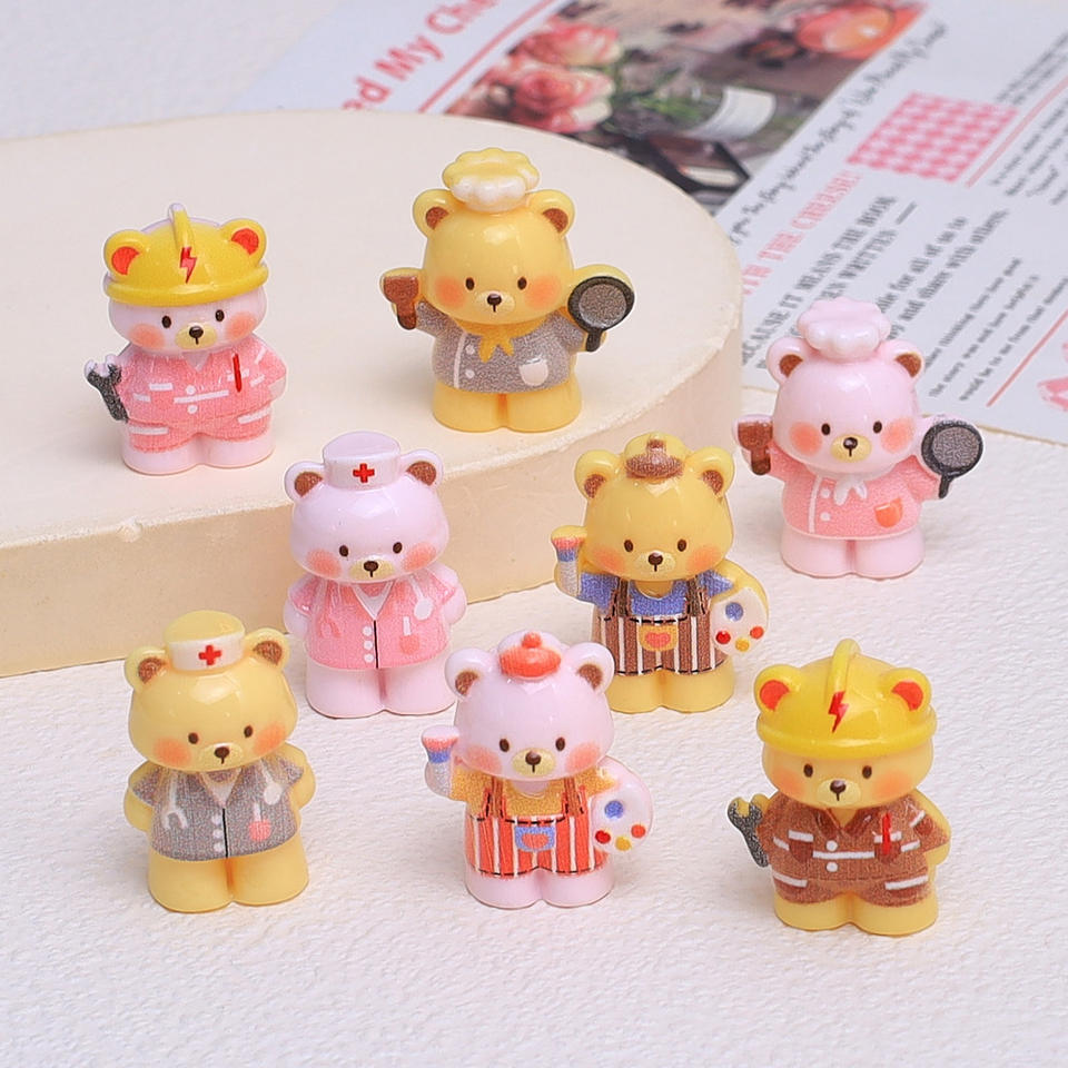 Miniature 3D en résine pour décoration de table de maquillage, figurine de dessin animé mignonne (peintre, infirmière, chef, ours en peluche), pour bricolage et décoration de tasse à eau