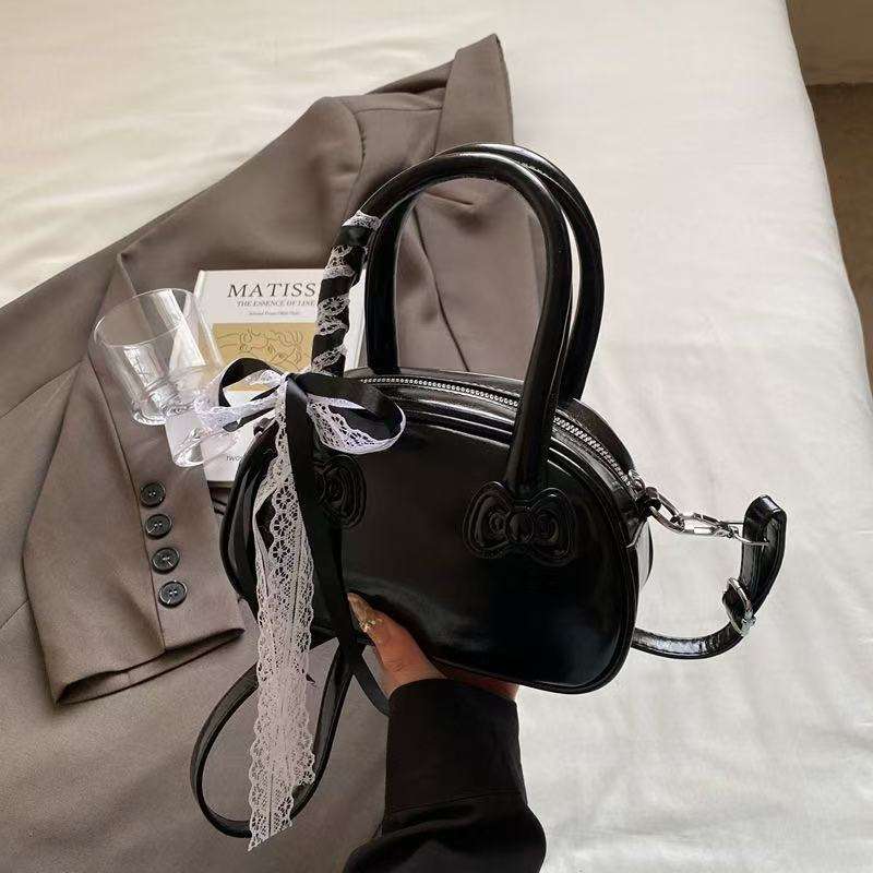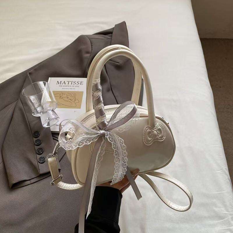 Mini sac à main carré 3D avec poignée imprimé nœud en dentelle