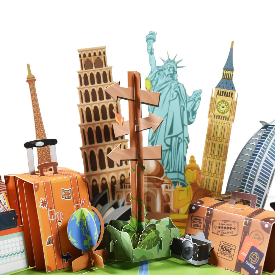 Carte de vœux de voyage 3D au nouveau design - Sculpture en papier pop-up créative pour les retraités, les hôtels et les agences de voyages, souvenir