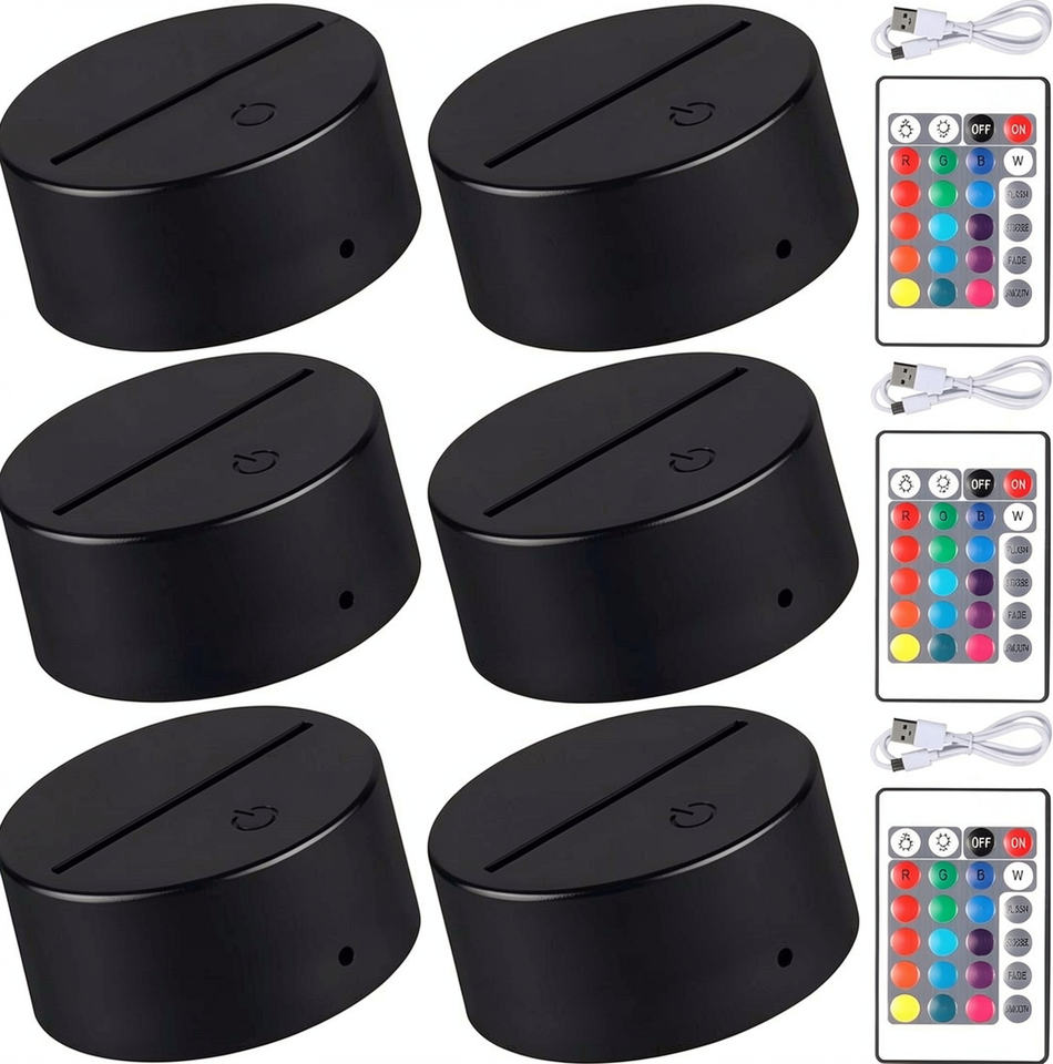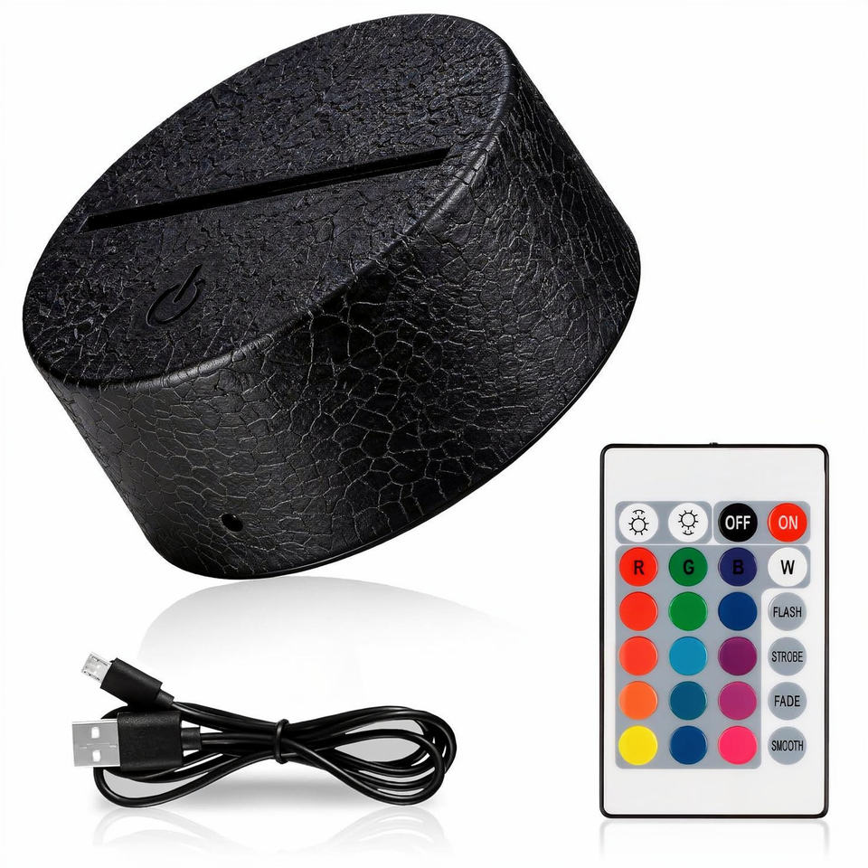 Lampe de nuit 3D avec base, télécommande, câble USB, 16 couleurs, décoration, lumières décoratives pour la maison, base LED pour chambre à coucher