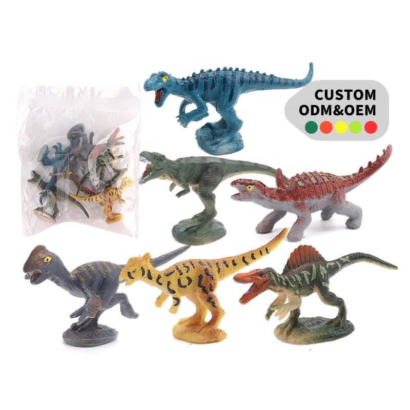 Mini figurines de dinosaures en plastique massif 3D PVC 6 pièces Ensemble de jeu Jouet du monde animal