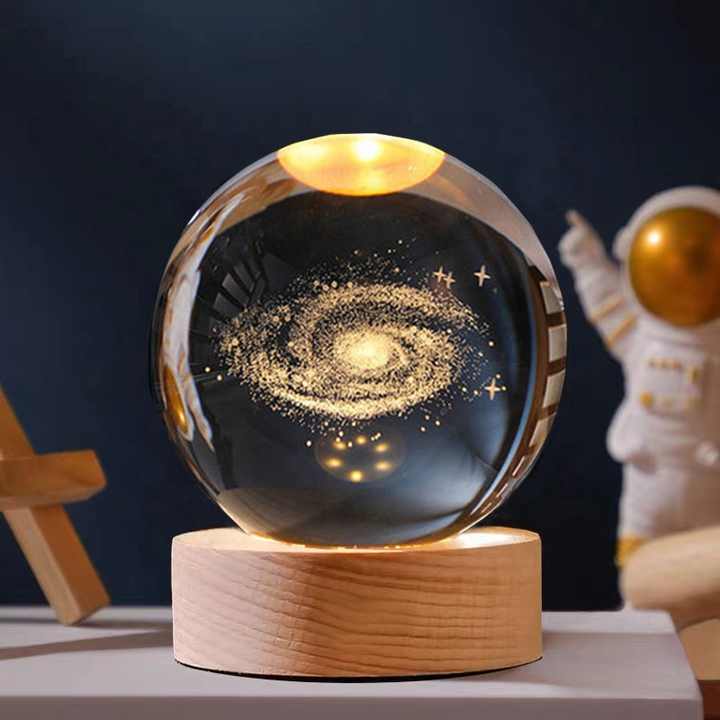 Lampe de nuit boule de cristal galaxie 3D avec support de lampe LED