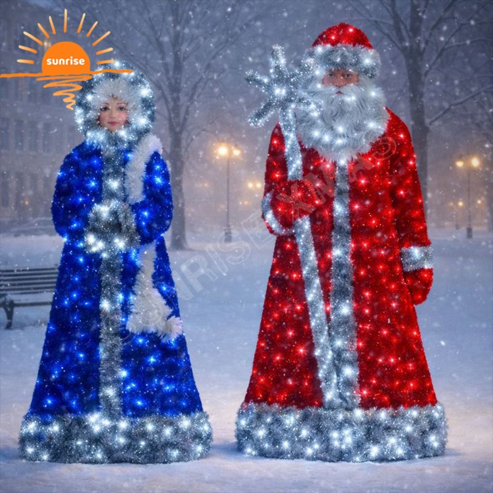 Décoration de Noël LED extérieure 3D de qualité supérieure, motif personnalisé Père Noël et Mère Noël, figurines lumineuses pour les fêtes commerciales
