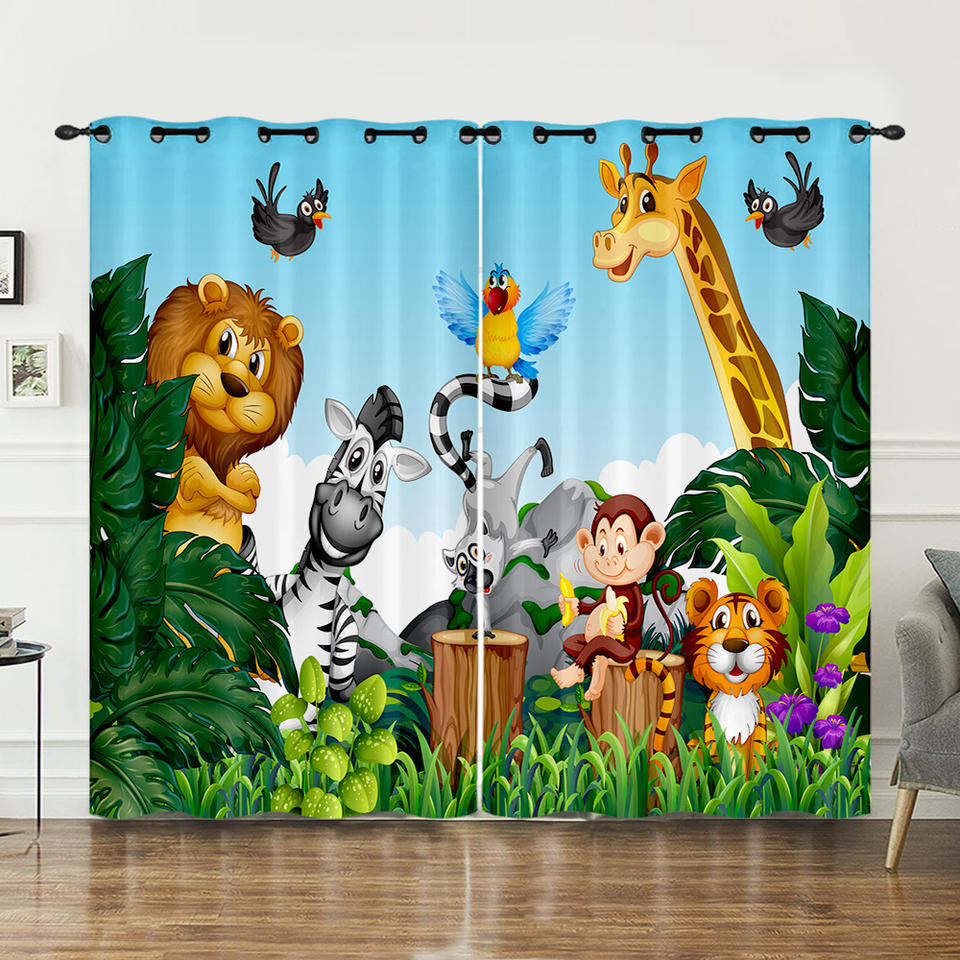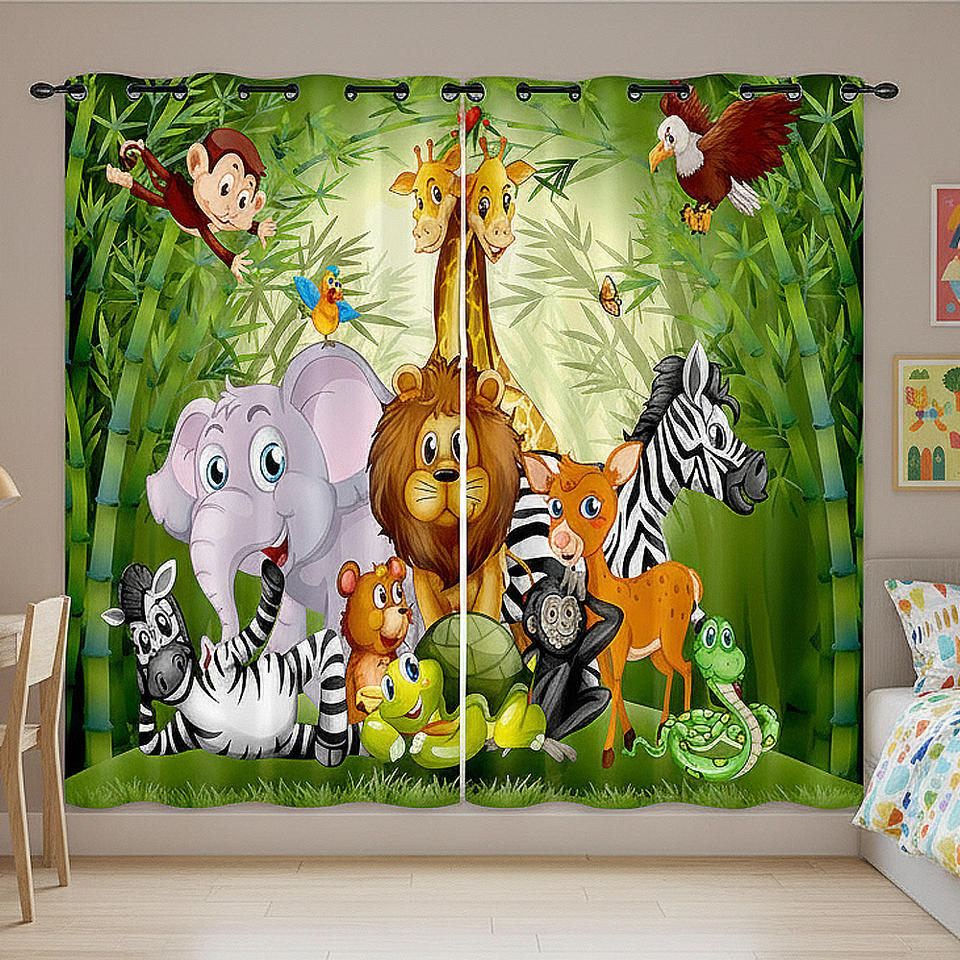 Rideau occultant à haute occultation en peluche courte personnalisable avec un motif de forêt de zoo de dessin animé imprimé en 3D pour la maison, la chambre à coucher, le salon