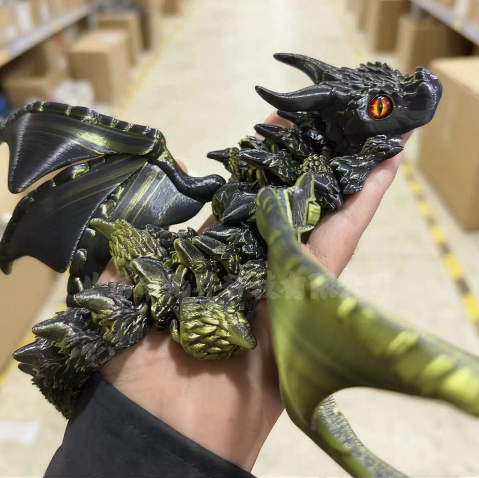 Figurine de dragon imprimée en 3D à double cornes, volante, multi-articulée, flexible, réaliste, jouet animal, ailes, grandes cornes