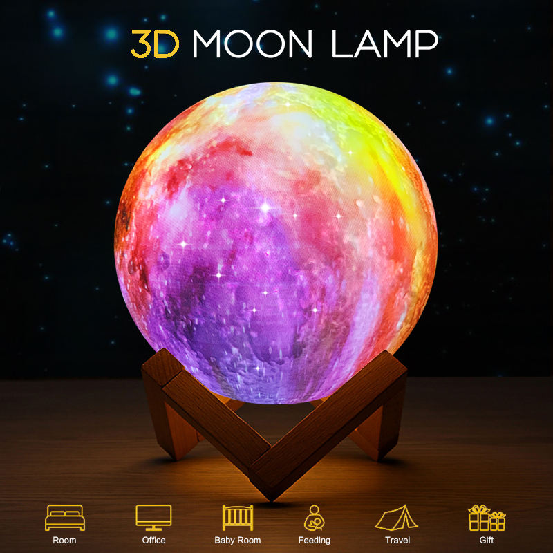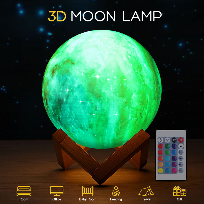Lampe Led imprimée en 3D représentant la lune, luminaire décoratif d'intérieur, intensité d'éclairage réglable, modèle