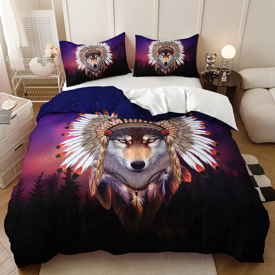 Ensemble de literie impression 3D Polyester la lune et le loup housse de couette