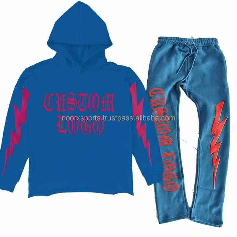3D Puff Print Sweatsuits Polaire Surdimensionné 100% Coton Sweat à Capuche Joggers Pantalon de Survêtement Évasé de Haute Qualité Ensemble de Survêtement Personnalisé pour Hommes