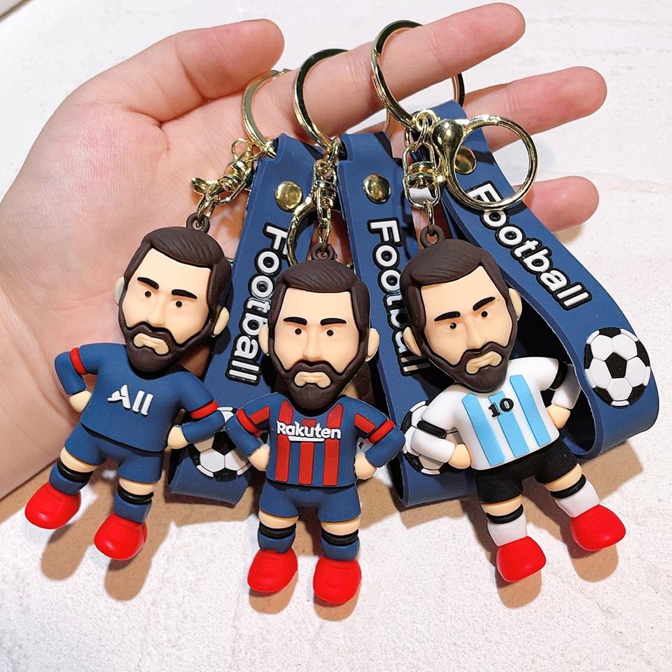 Porte-clés en PVC 3D pour figurine de football, personnage de Messi, sac de voiture en caoutchouc avec pendentif, cadeau sportif