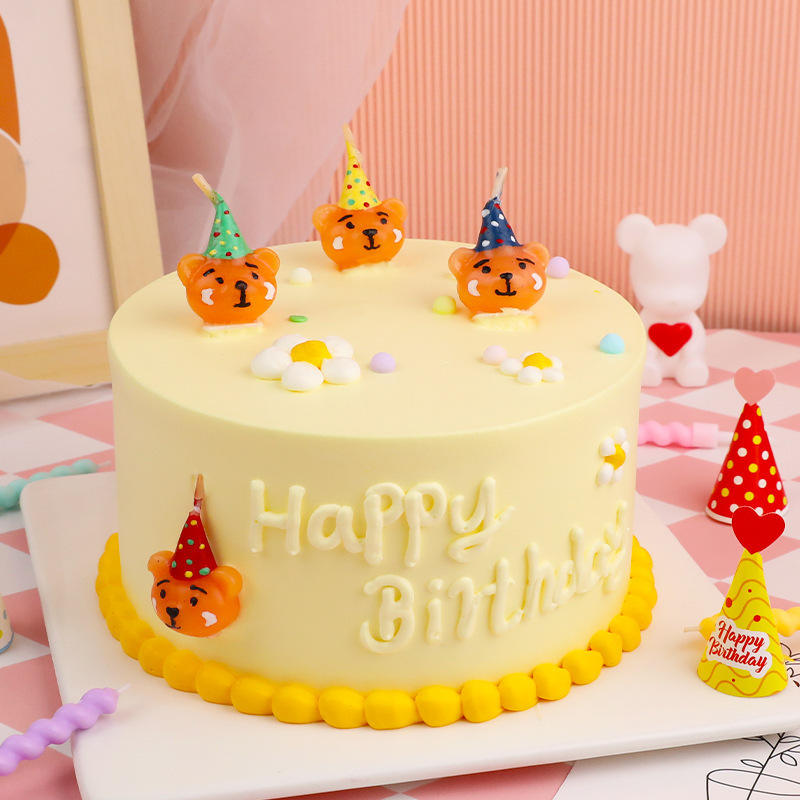 Bougie d'anniversaire 3D ronde en forme de chapeau rouge avec visage souriant, décor de fête jaune de dessin animé, en paraffine, forme spirale
