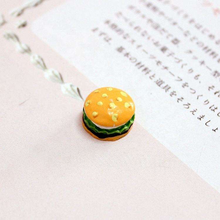 Breloques en résine modèle miniature de hamburger 3D, accessoires, cabochons, porte-clés au design artistique peint à la main