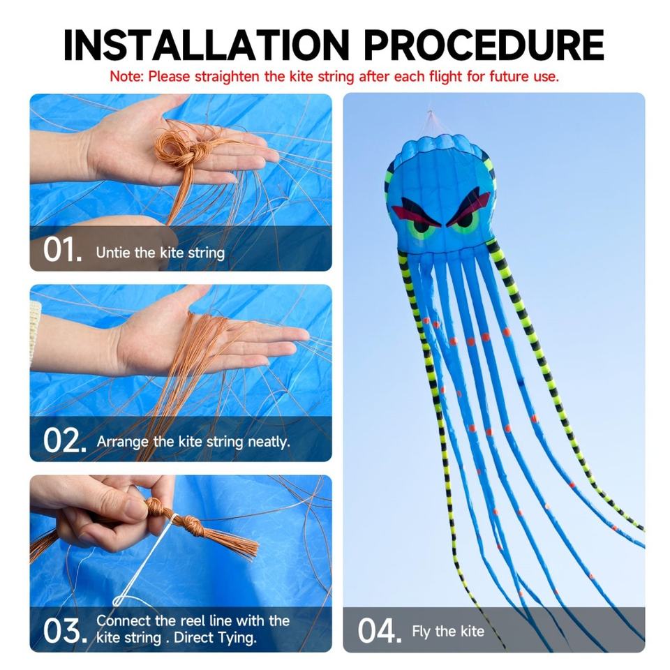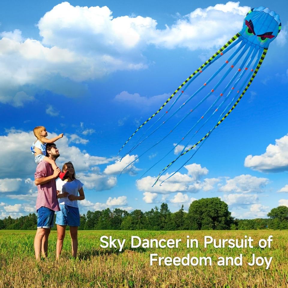 3D Soft 26ft Extra Large Fun Octopus Kite Livré avec 1000D Kite String Beach Park Outdoor Fun Beach Trip, Excellent cadeau pour les enfants