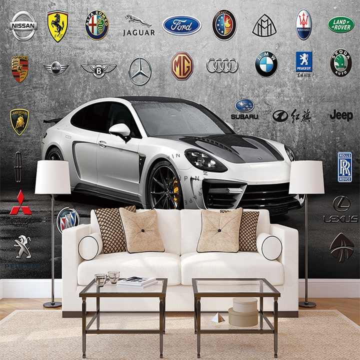 Papier peint mural industriel rétro avec logo de voiture de sport 3D, voiture de luxe