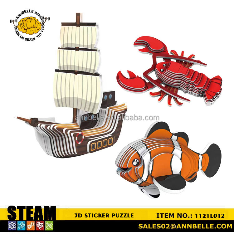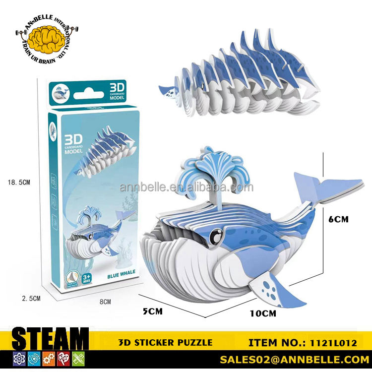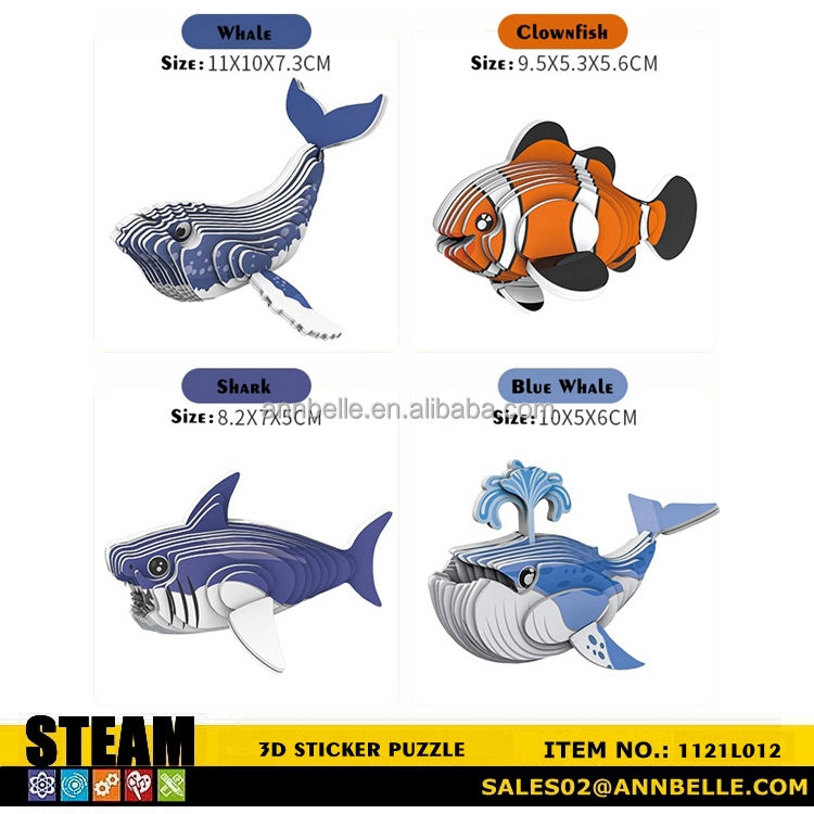 Puzzle 3D autocollant, puzzle 3D d'animaux marins, puzzle d'animaux marins, baleine bleue, requin, dauphin, bateau, homard, poisson-clown, narval