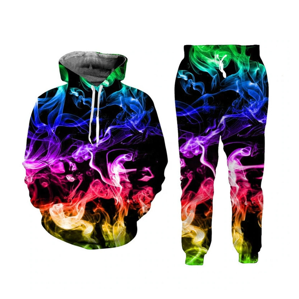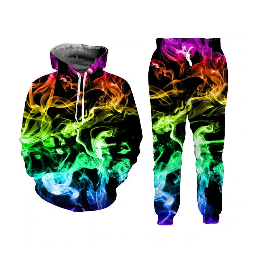 Ensemble de survêtement 2 pièces pour homme en polyester respirant avec sublimation 3D, idéal pour l'hiver, comprenant un sweat à capuche et un pantalon de sport