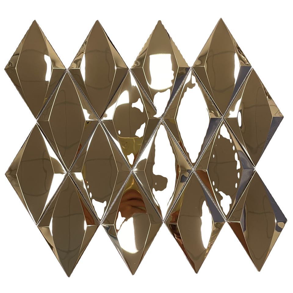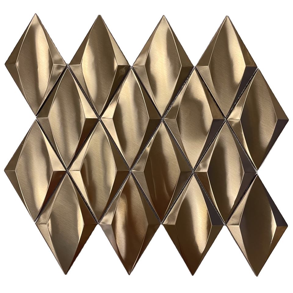 Surface 3D couleur or rose forme losange carrelage mosaïque en acier inoxydable finition ligne de cheveux avec carrelage mosaïque en verre