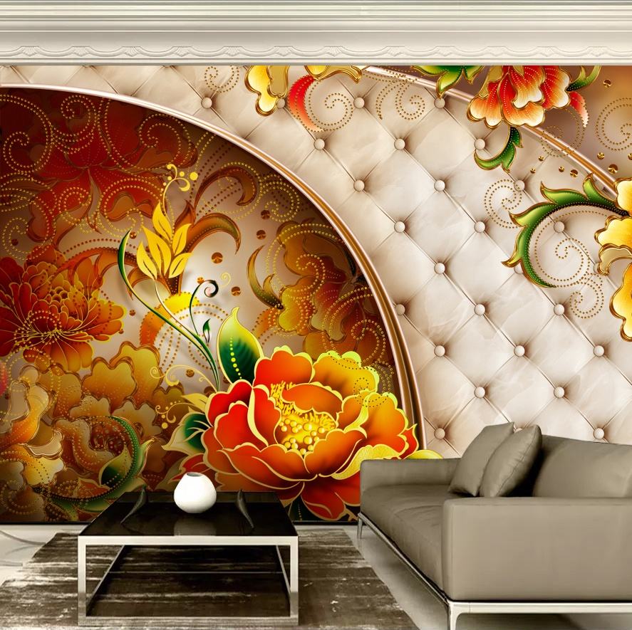 Papier peint 3D pour salon, décoration murale, arche, fleur de pivoine, papier peint mural