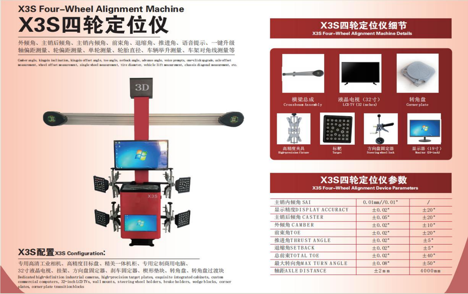 Machine d'alignement des roues 3D, fonctionnement par écran tactile et calibrage automatique pour les garages professionnels