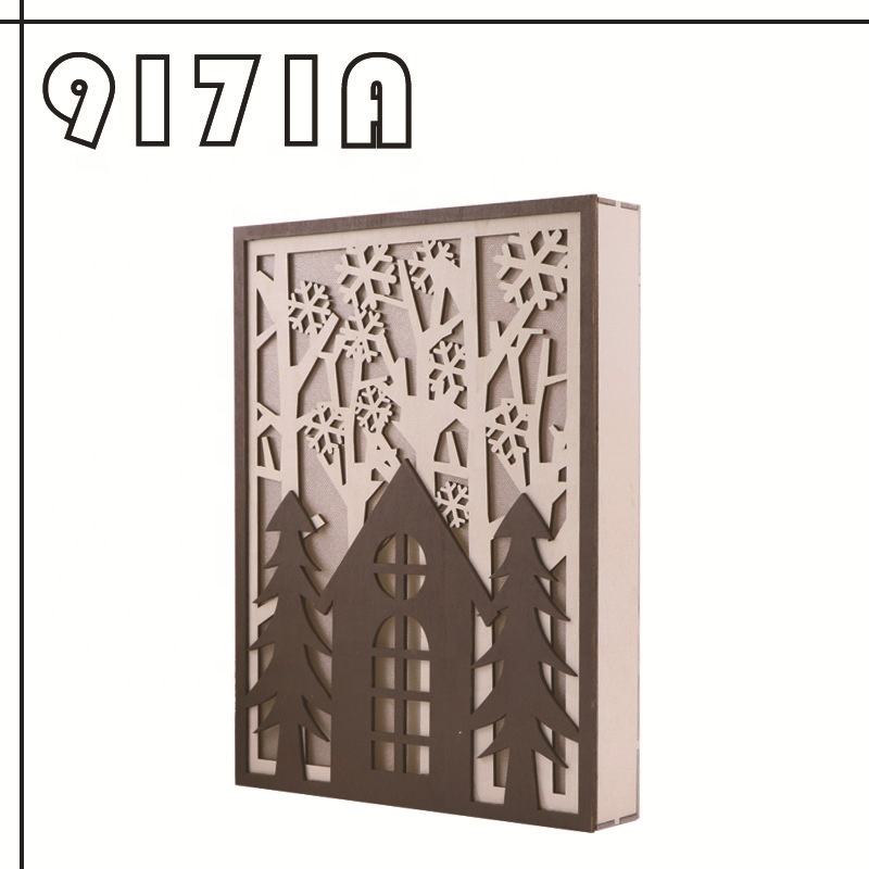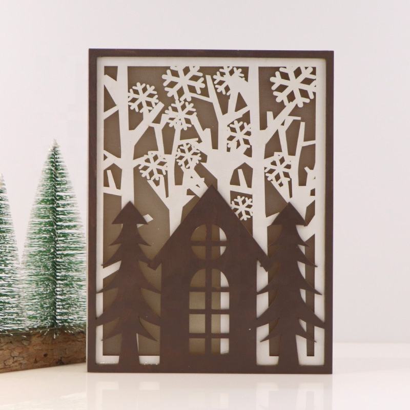 3D Winter Scenery Fir Trees DIY Wood Craft Set Home Decor Christmas Wood Light Decor Wood Products for Home