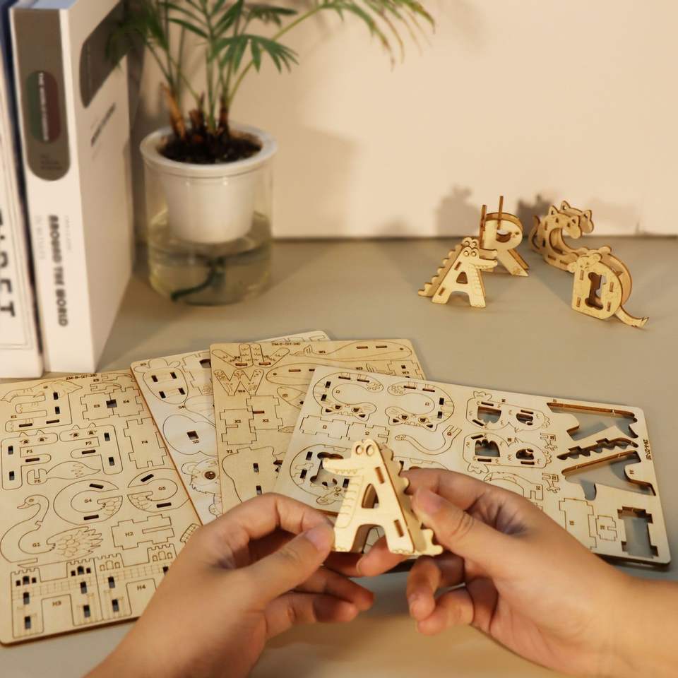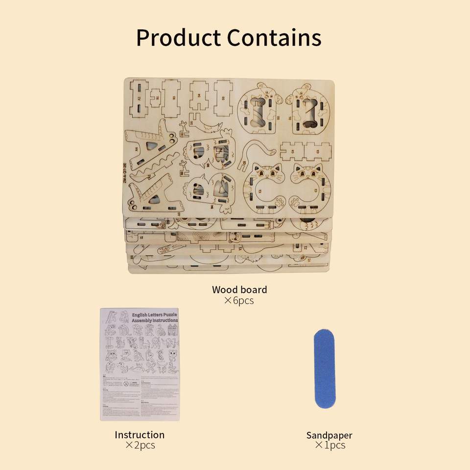 Puzzle en bois 3D, ensemble de jouets DIY, 26 lettres d'animaux de A à Z, kits de modèles faits à la main, cadeau de Noël unique