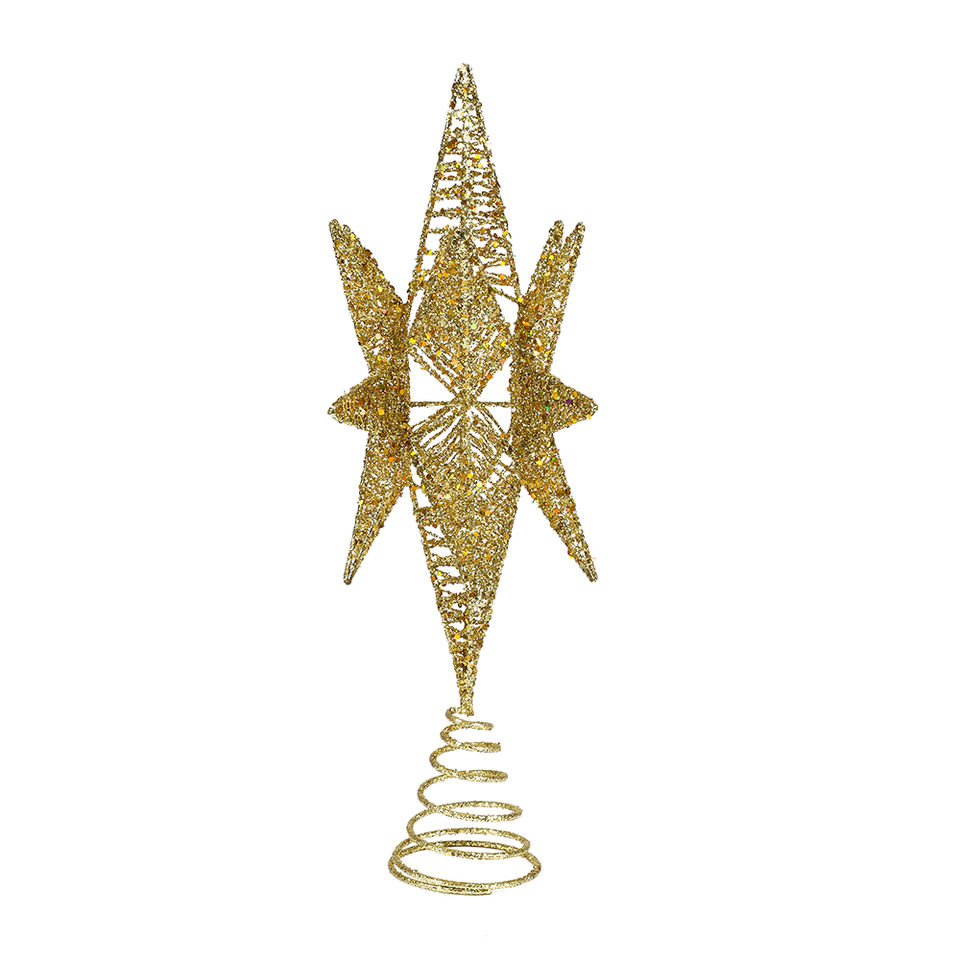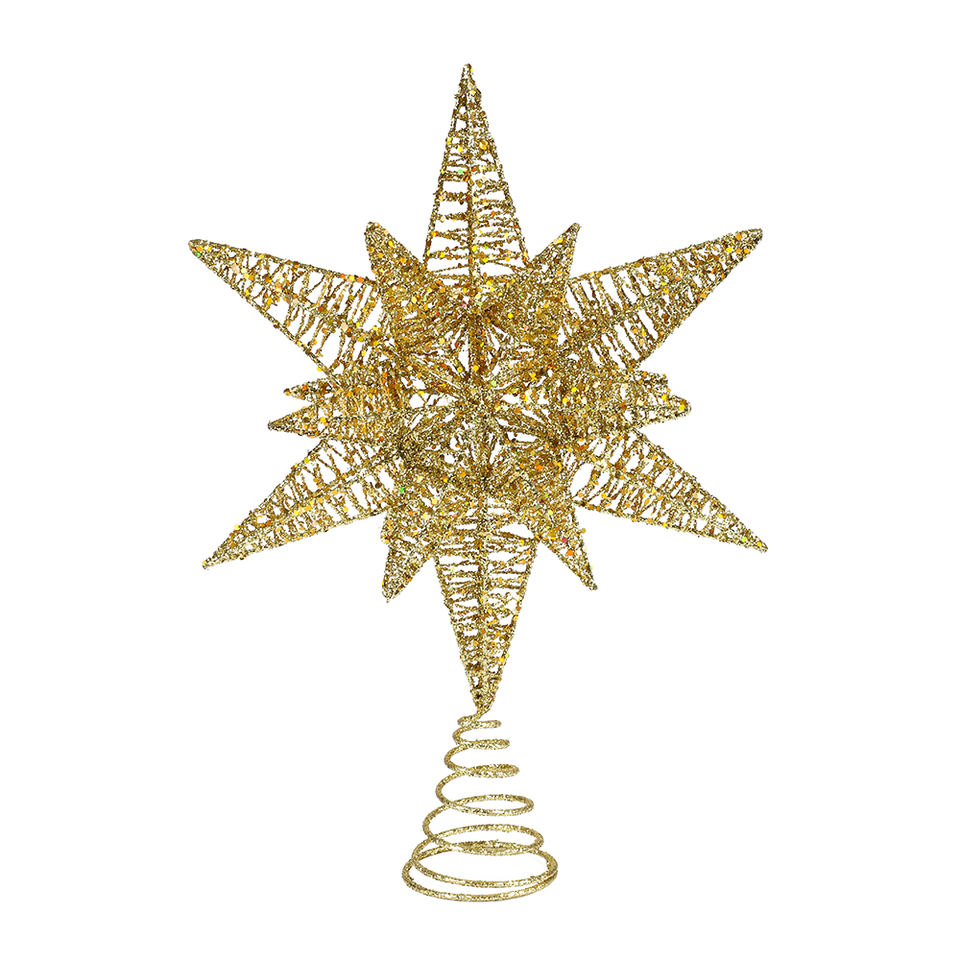 Décoration de sommet d'arbre de Noël en fer forgé 3D, étoile dorée, écologique, taille et couleur personnalisables