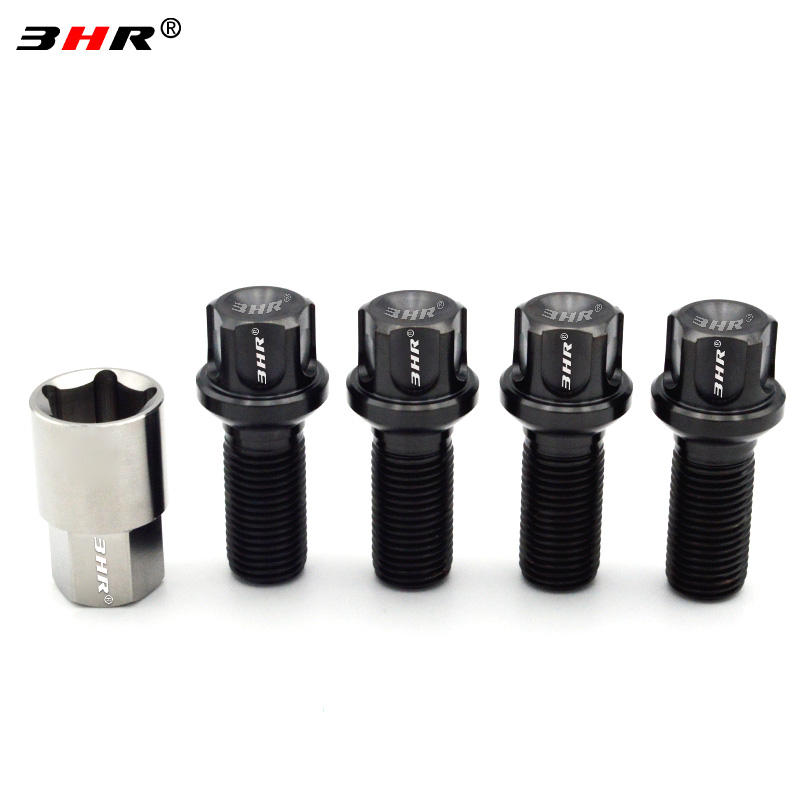 3HR Gr5 titane léger et haute résistance antivol couleur noire boule siège alliage boulon de roue goujon pour VW AUDI