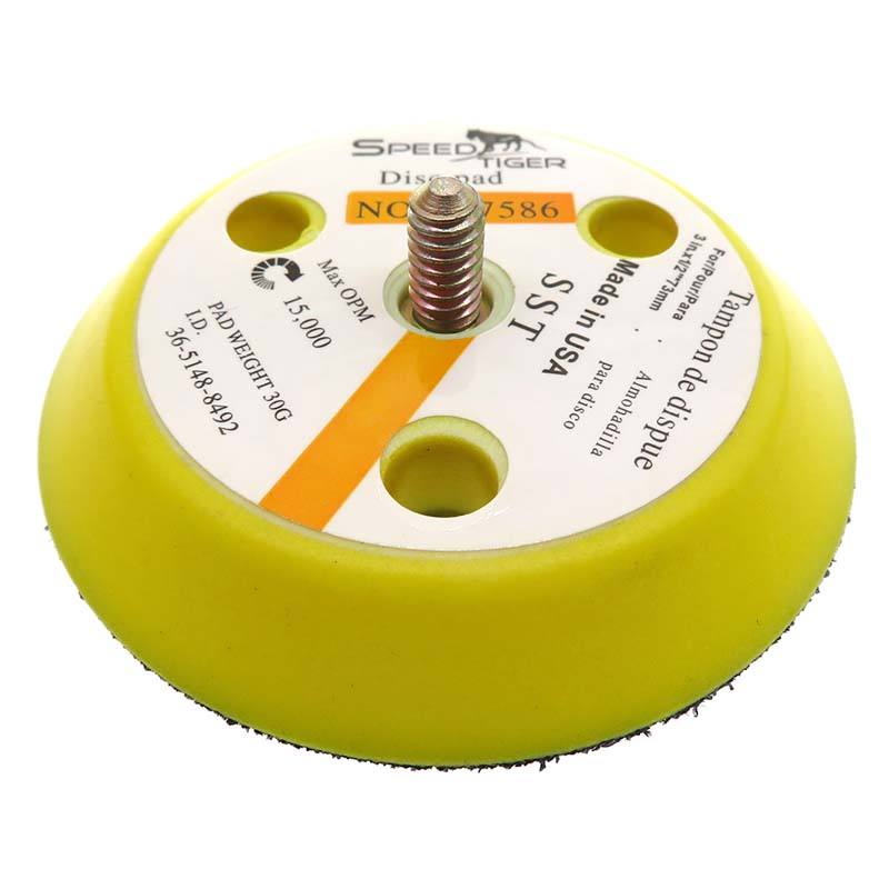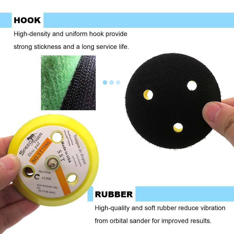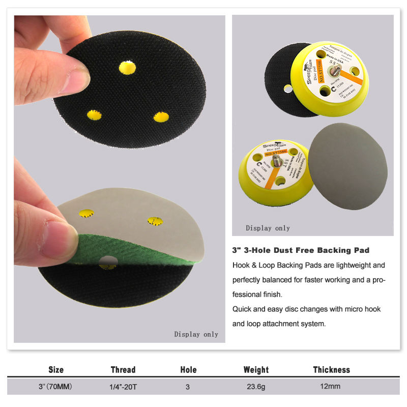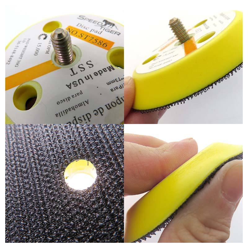 Plaque de support de ponçage jaune floquée de 3 pouces à 3 trous, filetage 1/4-20T, pour polissage du bois, des meubles et du métal
