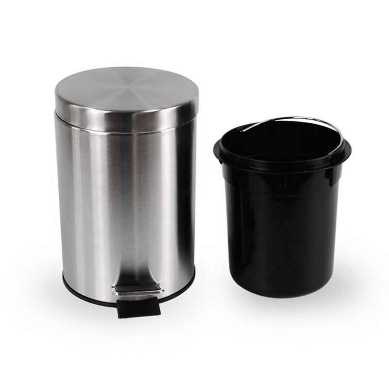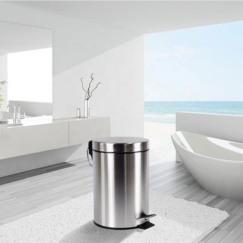 Poubelles rondes à pédale en acier inoxydable 3L 5L 7L 12L 20L 30L, poubelle à pédale en métal laiton cuivre avec couvercle plat à fermeture automatique